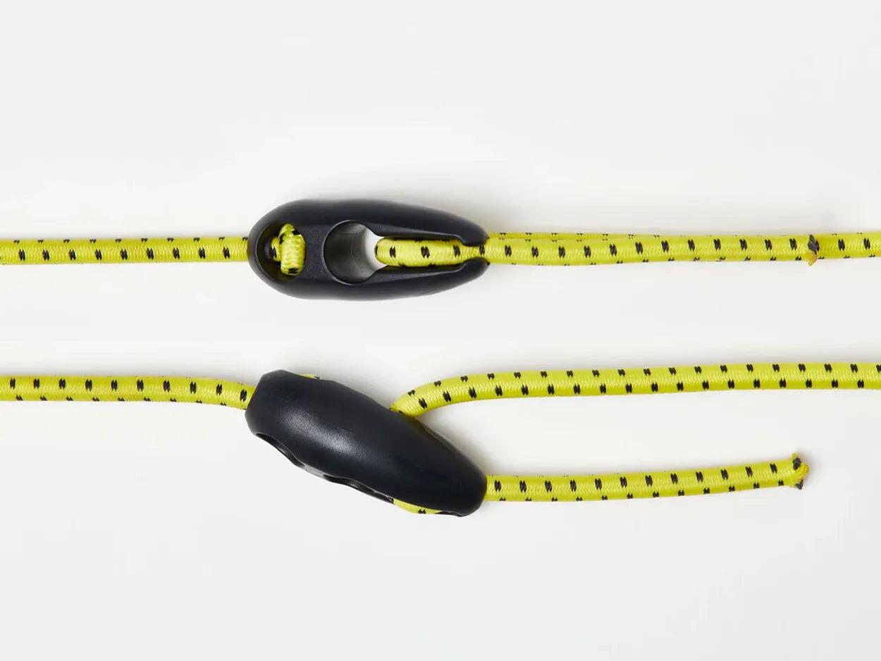 BUNGEES: Recycled polyester outer / rubber inner.