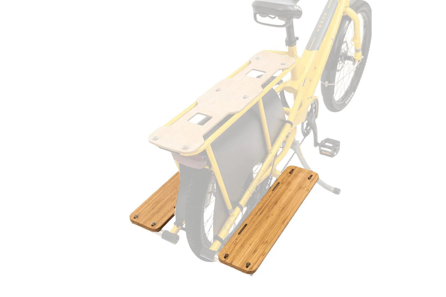 The Yuba Kombi Sideboards are bamboo accessories designed to enhance the functionality of your Yuba Kombi or Kombi E5 cargo bike. They provide a stable platform for passengers' feet or additional cargo, ensuring a smoother and more comfortable ride.