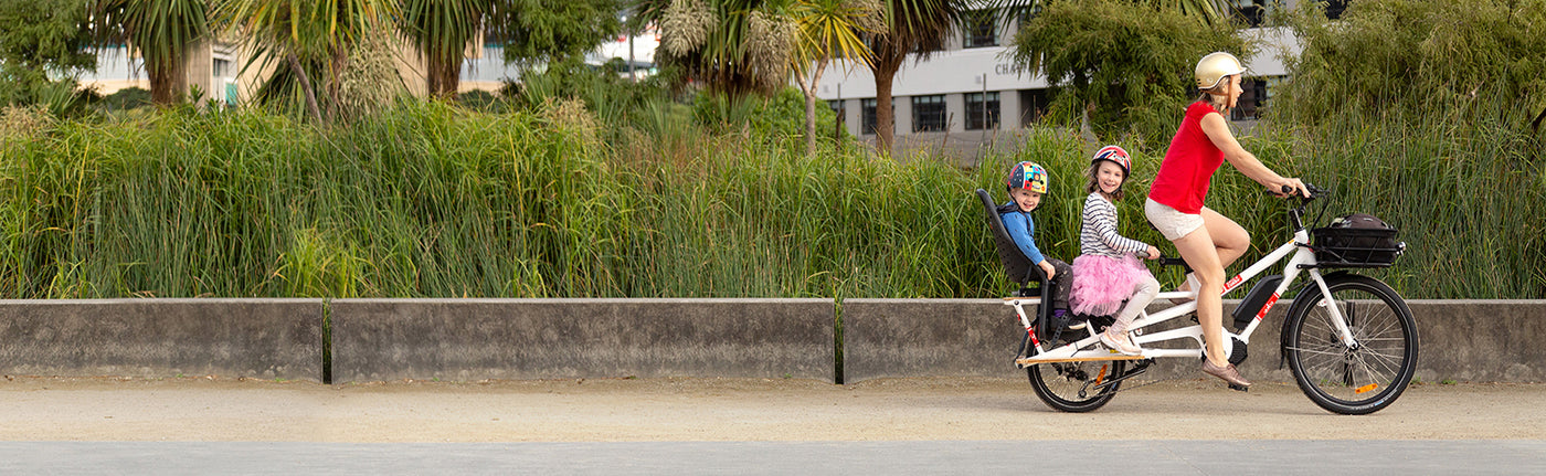 Cargo bikes are great for all kinds of uses, be it ferrying kids to school, carting groceries from the market or running a business from a bike. Perhaps your intended use will be a combination of these. Many families are discovering the ease of dropping kids to school by bike, then riding onwards to work. Perhaps on the way home you’ll pick up the kids then a round of groceries from the supermarket. The bigger the capacity of the cargo bike the more you will find you use it and the more liberated you will feel from the woes of carparking and traffic. It’s like one big life-hack. Make a list of all the things you’d love to be able to do by bike, and keep those in mind as you consider our big range of cargo bikes. You can fill out our cargo bike questionnaire here, and we'll get back to you with some ideas of which of our bikes may work for you.
