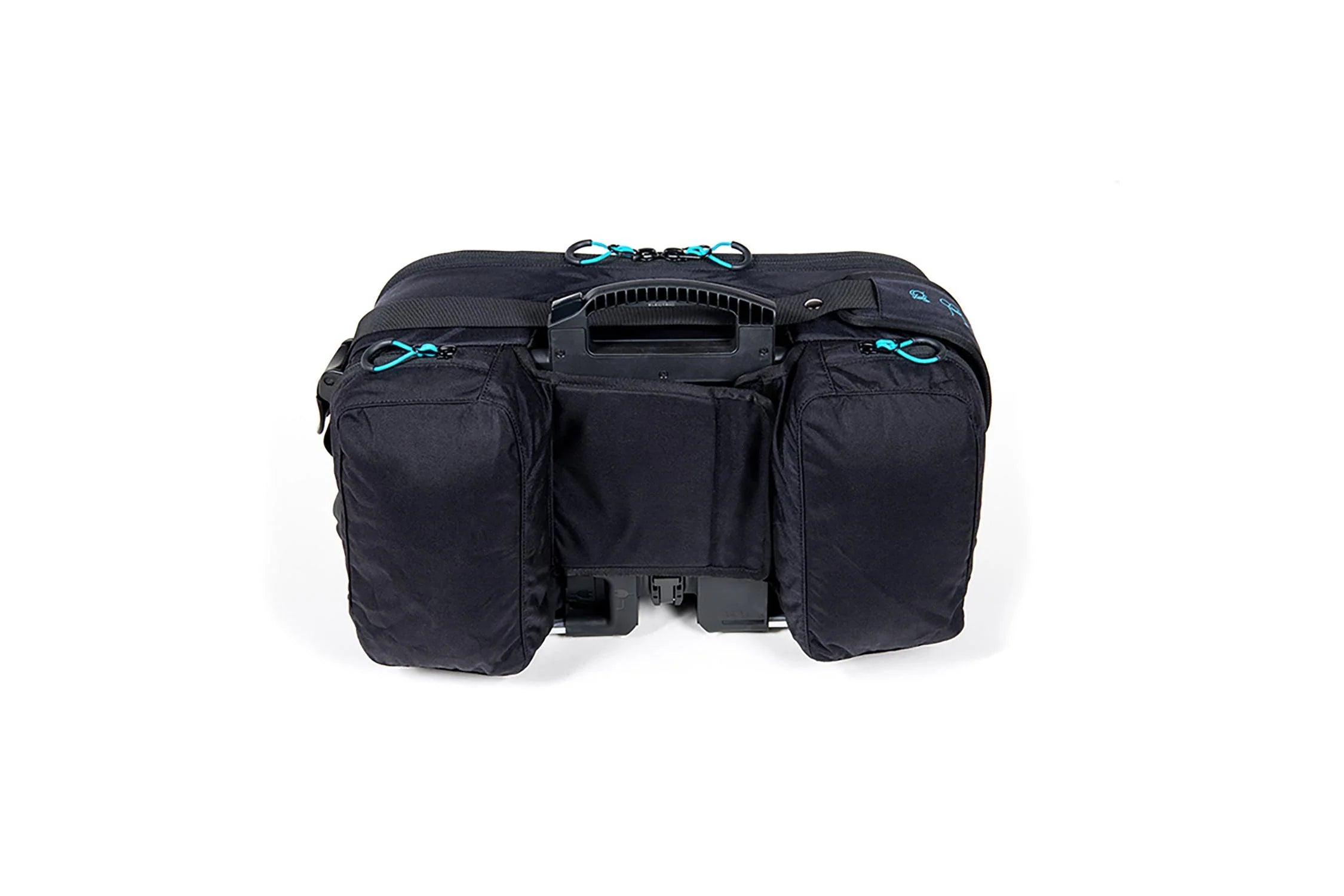 Perfect for the days when you need to carry more. The main compartment, containing a suspended laptop holder, is joined by a front pocket and two rear pockets for easy access to a water bottle, your phone or any other essentials. The City Bag also allows you to access the battery so you can charge your phone or tablet while riding. It is constructed from a durable, hard-wearing Cordura fabric and has a padded, quick-release shoulder strap that tucks away in a dedicated side pocket while you’re riding. There’s even an integrated high-visibility rain cover that has a wraparound reflective band, perfect for unexpected showers.