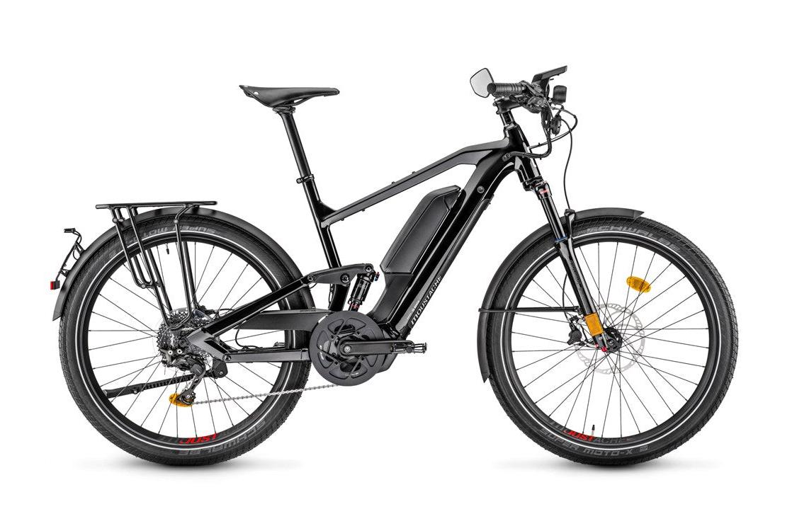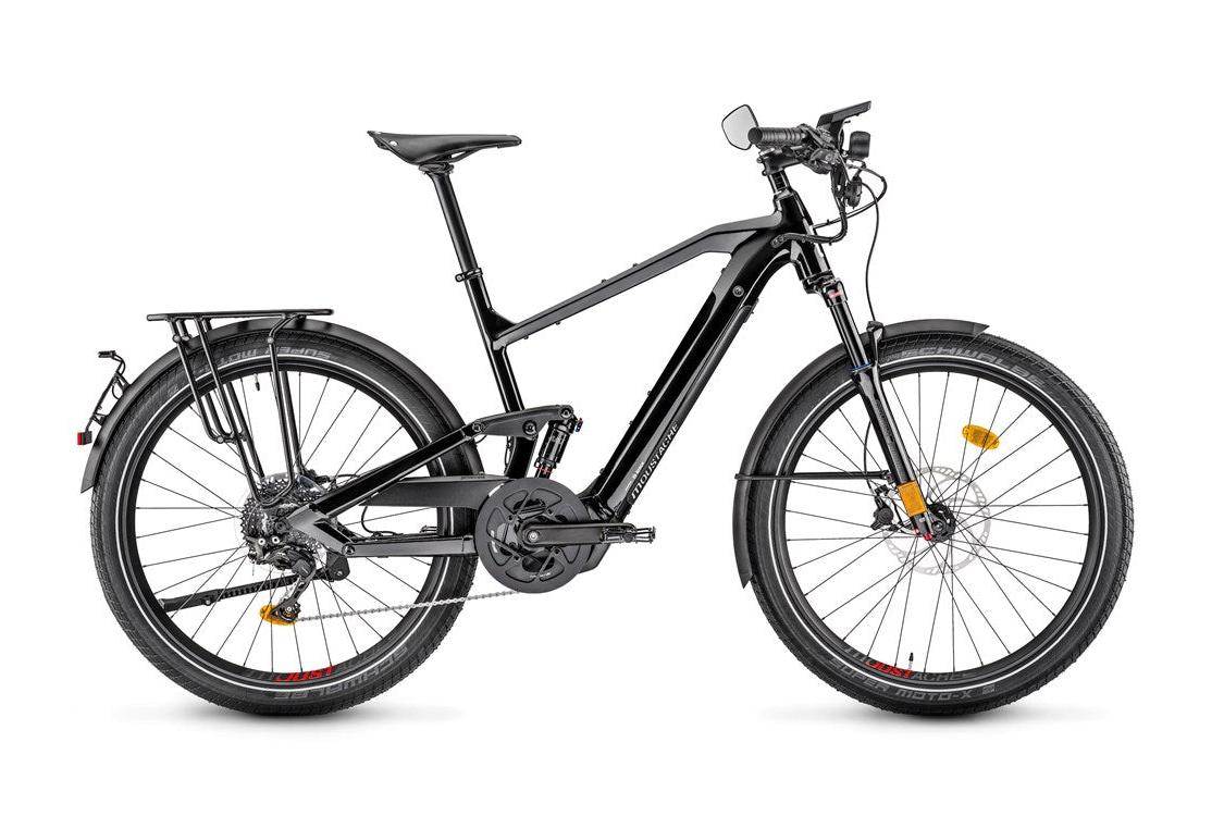 The new full suspension frame coupled with our Moustache Magic Grip Control shock and the SR Suntour Mobie fork offering 100 mm of travel front and rear, and the Schwalbe Super Moto-X large volume tires will ensure your outings are always comfortable! And for the practical side, we have equipped our Friday 27 FS Speed Dual with a Busch+Müller retractable rearview mirror, a QL3 compatible luggage rack with MIK accessories, and a powerful and safe Supernova light.