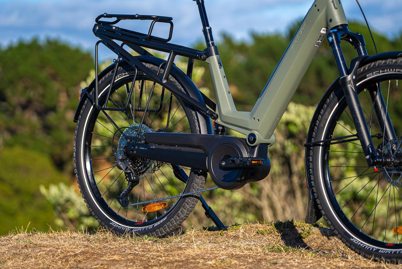 When riding an e-bike there is no need to be tucked down low into the wind as the motor simply pushes you through it, but if you’re an experienced rider you may find that a sporty riding position is more familiar and comfortable. If you’re new or newly returning to cycling you might prefer an upright step-thru bike, generally new riders feel safer riding upright. Perhaps you’d like a mix of both in which case a mid-step frame will typically give you that semi upright riding position. The riding position on most bikes can be customised somewhat with adjustable handlebars and seat positions. We can help you with this in-store. Use the frame style filters in our shop pages to choose your desired riding position.