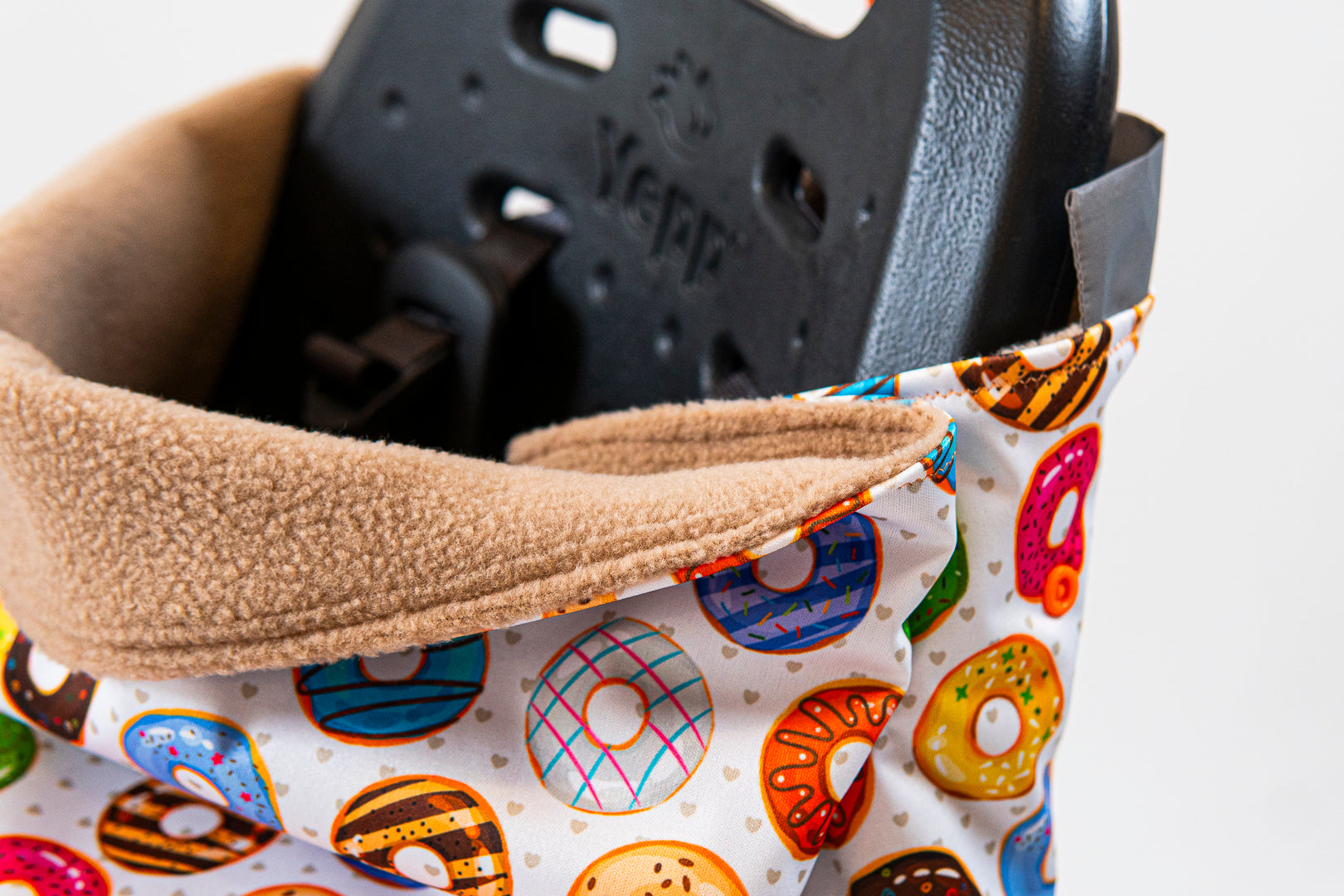 "Hello fellow bike mums and bike dads! My name is Dasha. I am mum of Thomas (7) and Mila (4), and I have a huge passion for bikes. We are a car-free family. Both mum and dad transport the kids around on cargo bikes, regardless of the weather here in Wellington. Two years ago, I decided to make an “all year around” blanket to keep my kids warm when they are strapped in to their bike seats. The design is very simple, safe and practical. The blanket is tube-shaped: there are no zips or buckles, it just slips over the bike seat and can be pulled up around the child. It’s much easier than putting on extra layers! The prototype was tested extensively and refined over many chilly summer mornings and evenings, cold winter days and occasional showers. Mila loves this soft blanket so much that she refuses to ride without it. I am now offering custom-made TOOB blankets to order, to help other mums and dads keep their little precious cargo warm. Thank you for your support!"